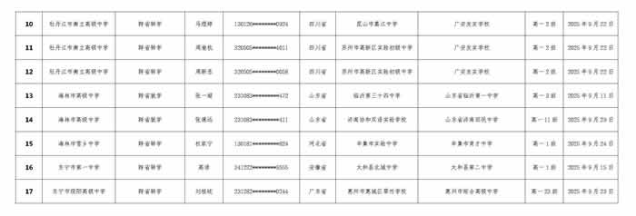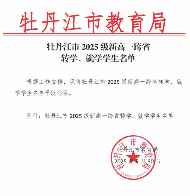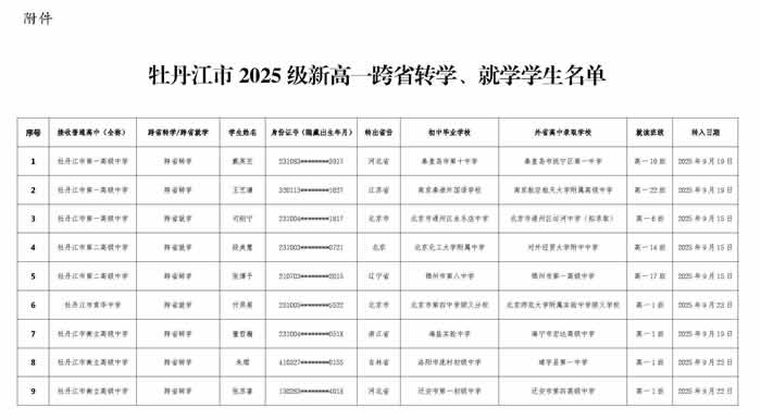 牡丹江市2025级新高一跨省转学、就学学生名单